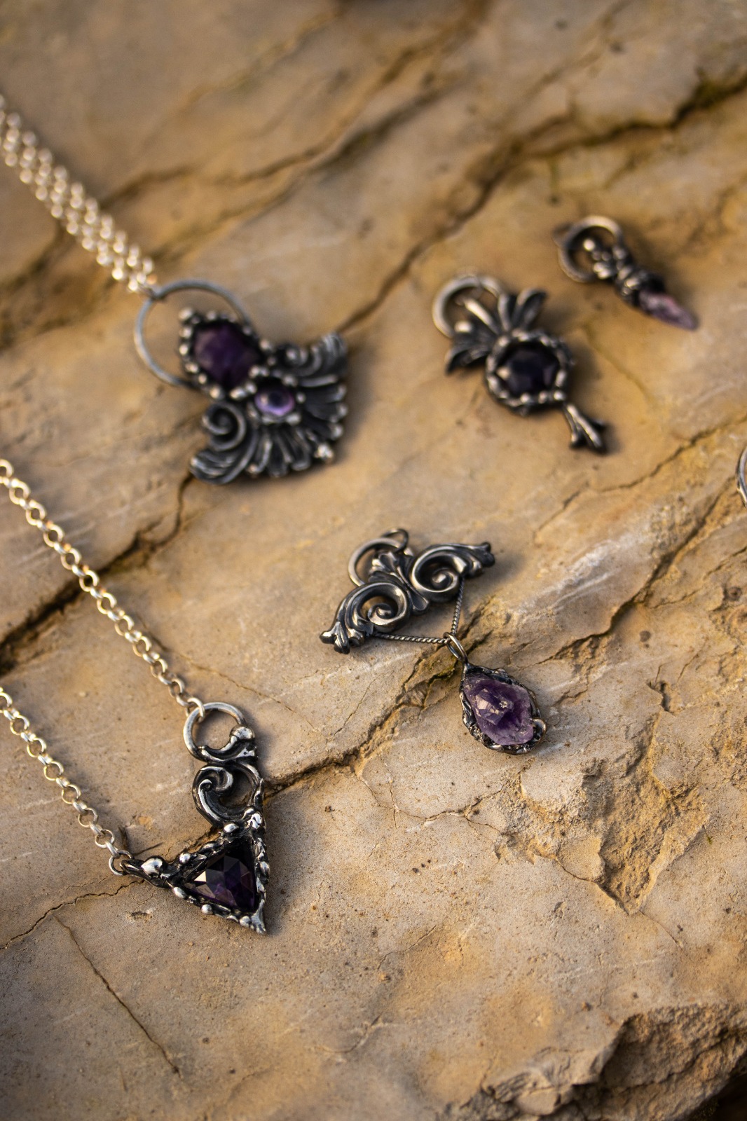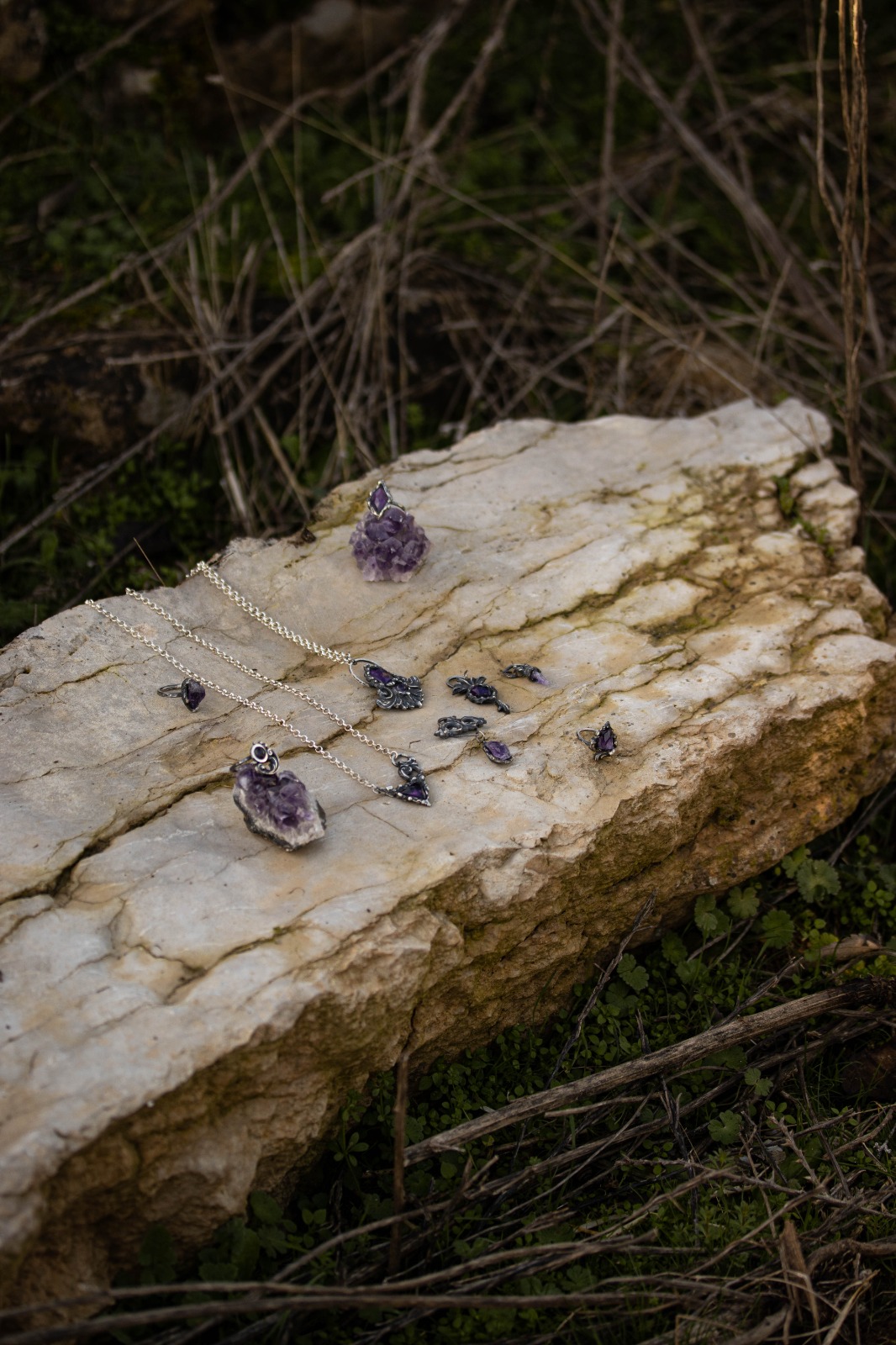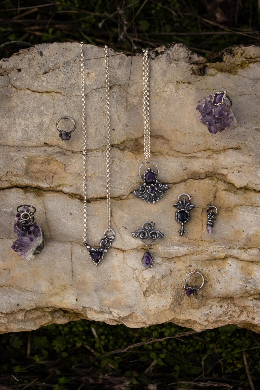 Plata de primera ley y amatista natural.