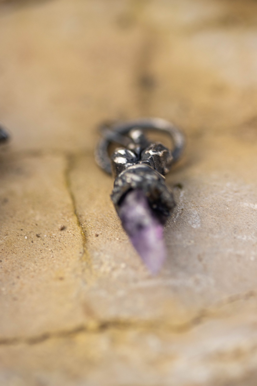 La amatista en bruto emerge como cristal nacido de la tierra sin pulir.