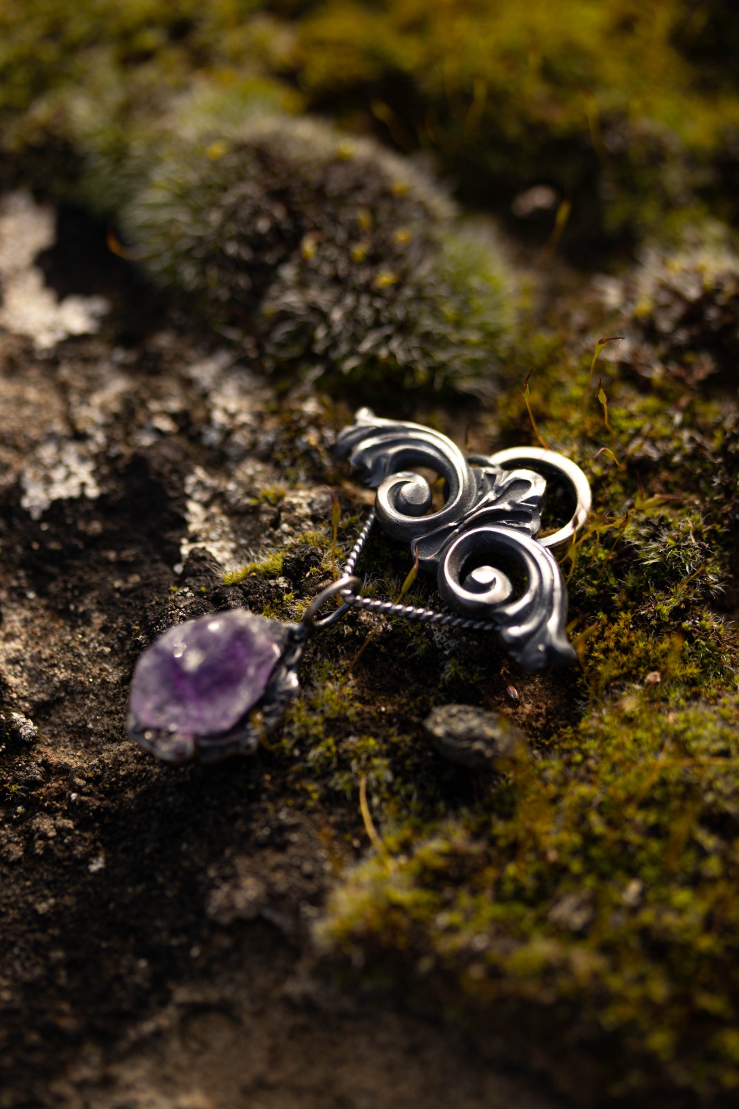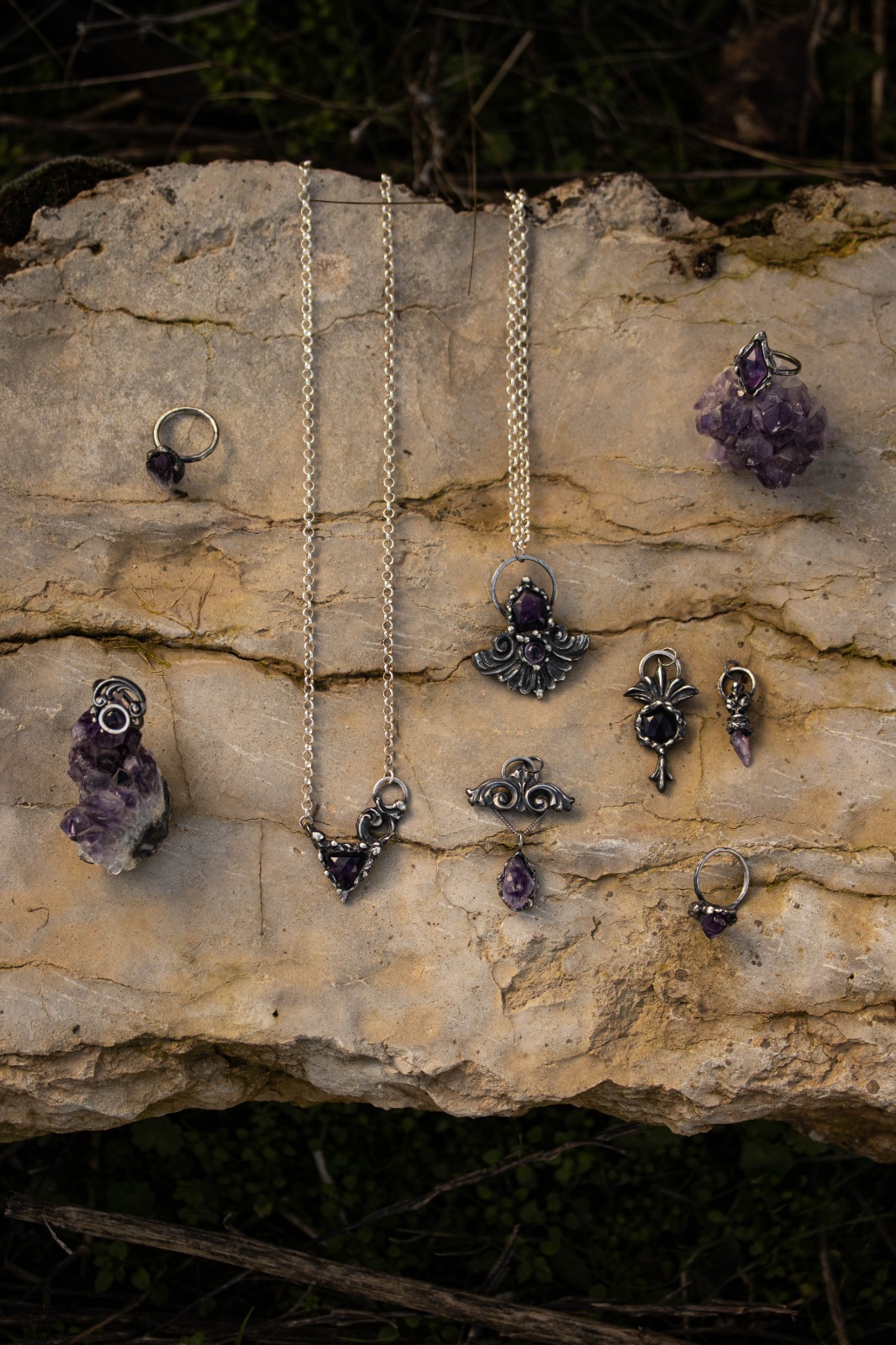 En el centro, una amatista en bruto, intacta, salvaje, sin domesticar.