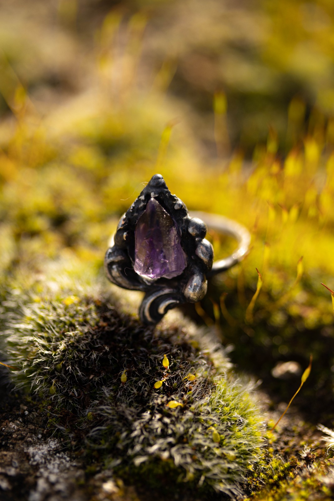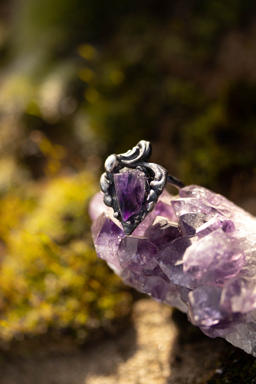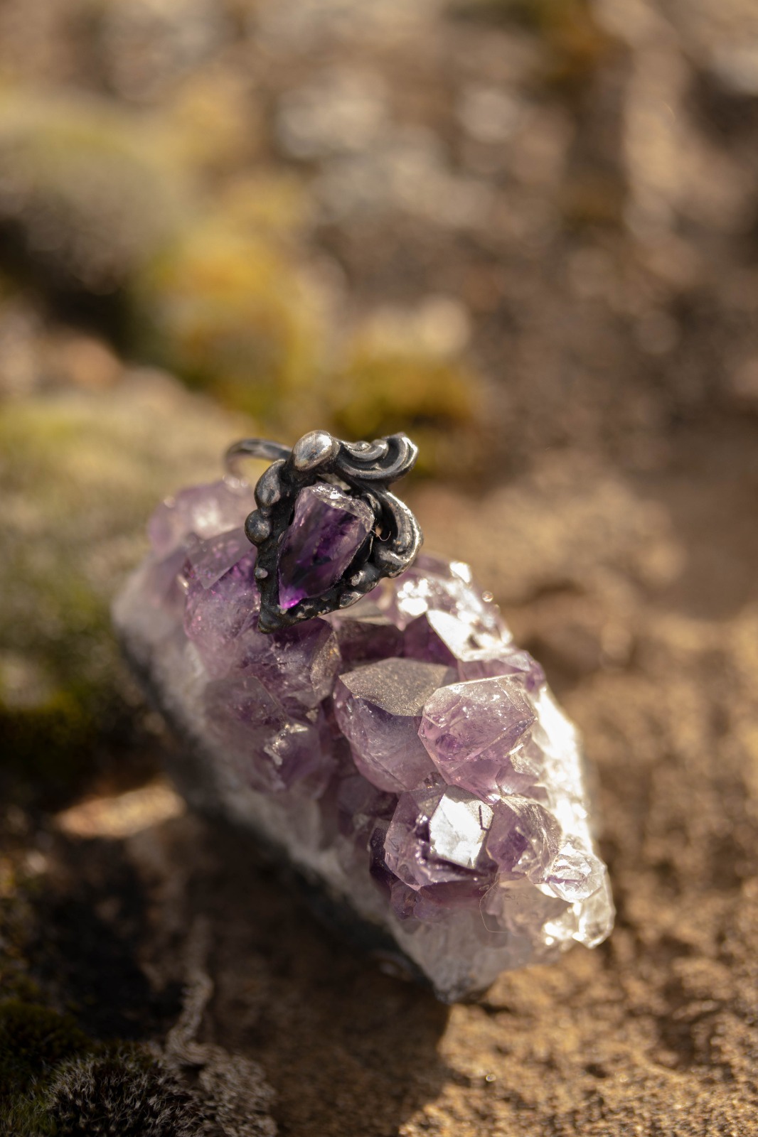 La amatista en bruto late intacta en el centro.